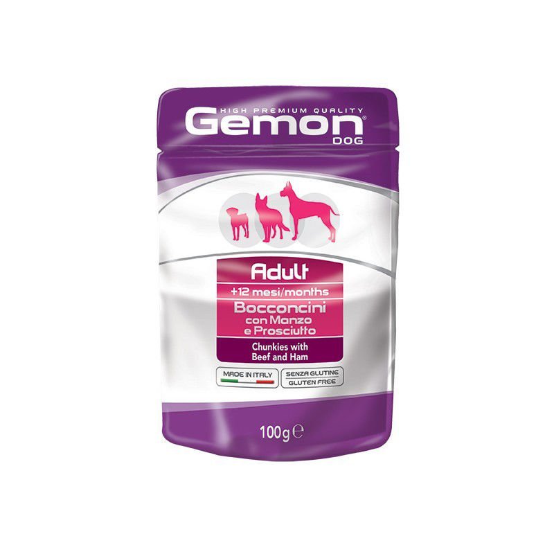 Gemon Adult konservuoti Jautienos ir Kumpio gabaliukai, visų veislių suaugusiems šunims 100g