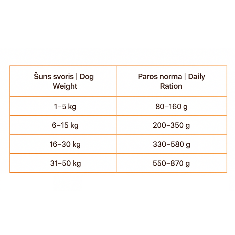 Naudojimo instrukcijos: Gali būti duodamas sausas arba sudrėkintas vandeniu ar sultiniu. Rekomenduojama laikytis nurodytų šėrimo normų. Jei produktas naudojamas pirmą kartą, į racioną įtraukti palaipsniui. Visada užtikrinkite, kad šuo turėtų prieigą prie švaraus ir šviežio vandens. Laikyti vėsioje, sausoje vietoje.
